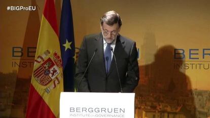 El presidente del Gobierno, Mariano Rajoy, ha clausurado este viernes en Madrid el ciclo de conferencias sobre el futuro de Europa organizado por el Instituto Berggruen para la gobernanza con un discurso de radical defensa del europeísmo. El presidente ha mostrado su preocupación por el ascenso de fuerzas euroescépticas. "Algunos están alimentando el desapego hacia Europa de manera injusta y temeraria. Hay una crisis de confianza inquietante, es una minoría que crece cada día. Tenemos que estar dispuestos a salvaguardar la libre circulación de personas, que es un pilar básico, la savia de la UE, como lo es la de bienes y servicios. Todos debemos defenderla con convicción. Estas elecciones son un reto para el europeismo. Es mi deseo que haya una mayoría sólida de fuerzas que crean en la integración europea. Las fuerzas euroescepticas están al acecho para dinamitar el proyecto desde dentro porque son incapaces de construir una alternativa", ha alertado el jefe del Gobierno después de recordar que España siempre se ha destacado por su europeísmo.