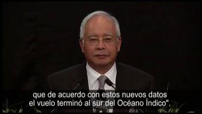 Diecisiete días de angustia para recibir la peor de las noticias. Las familias de las 239 personas que iban a bordo del vuelo de Malaysian Airlines que desapareció el 8 de marzo cuando iba de Kuala Lumpur a Pekín recibieron este lunes la confirmación oficial de lo que todos los indicios apuntaban desde hace días: el B-777 se estrelló en el Índico sur. Falta por conocer aún las circunstancias que llevaron al avión a ese trágico destino, si bien las autoridades malasias siguen pensando que alguien desconectó las comunicaciones y lo desvió con intenciones criminales. El primer ministro de Malasia, Najib Razak, aseguró en una breve comparecencia ante la prensa que un nuevo análisis de los datos de satélite confirman que la última posición del avión fue “en medio del océano Índico, al oeste de [la ciudad australiana] de Perth”, sin más precisión.