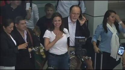 La diputada opositora regresa a Caracas y dice que seguirá siendo parlamentaria pese a que ha sido desaforada