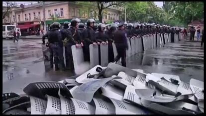 Al igual que la sede de la Administración Provincial, otros edificios de Donetsk en manos rebeldes han redoblado en los últimos días la vigilancia. En la mañana pudieron verse en torno al Ayuntamiento columnas de milicianos al trote en un aparente entrenamiento militar. En el resto de inmuebles ocupados de la ciudad, la tensión era notoria. “Hemos recibido una instrucción militar limitada, entre una y tres semanas según las funciones, y no somos soldados profesionales, pero repeleremos cualquier agresión del Ejército”, aseguraba en la sede de la radiotelevisión provincial Yuri, portavoz improvisado de Oplot, el grupo que la ocupó hace casi una semana.