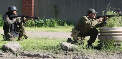 Papel mojado en un día radiante de sol. Las papeletas que con tanto ahínco cortaban este miércoles a guillotina varios voluntarios en la sede de la Administración Provincial de Donetsk, cuartel general de la autoproclamada República homónima, se convirtieron momentáneamente en preguntas sin respuesta tras el llamamiento del presidente ruso, Vladímir Putin, a posponer el referéndum convocado para el próximo domingo en esta provincia y la de Lugansk, en las que viven cerca de 6,5 millones de ucranios. La apelación, pendiente de ser sometida este jueves a debate por la dirección colegiada rebelde, cogió con el pie cambiado a los prorrusos, que desde el 6 de abril echan un pulso al Gobierno interino con la ocupación de edificios oficiales y, desde el fin de semana, intentan repeler por la fuerza la ofensiva de Kiev para rendirlos.