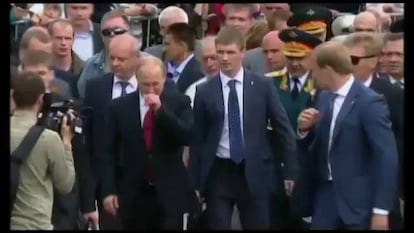 En la plaza Roja, Putin se refirió al pueblo soviético y a su voluntad férrea. En Sebastopol, donde la multitud exaltada hasta el paroxismo le acogió como a un dios, el dirigente ruso no mencionó ni a la Unión Soviética ni a Ucrania en la alocución que pronunció ante un público entusiasta que alternaba los vítores a su persona con los vítores a Rusia. Acompañado del ministro de Defensa, Serguéi Shaigú, Putin, con la cinta negra y naranja de San Jorge (alusiva a la Segunda Guerra Mundial) en la solapa, pasó revista desde una lancha a los buques de la flota, incluido el buque insignia, el crucero portamisiles Moskva. Desde las cubiertas, las tripulaciones en uniforme de gala le saludaban en posición de firmes.