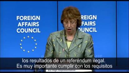 Más unánime fue la condena del referéndum del domingo. “La UE no reconocerá ningún referéndum ilegal e ilegítimo”, aseguró la alta representante para la Política Exterior, Catherine Ashton. Los ministros, además, reprocharon a Putin por escrito su presencia en el desfile militar de Sebastopol (Crimea) el pasado 9 de mayo, aniversario de la derrota de la Alemania nazi en la Segunda Guerra Mundial.