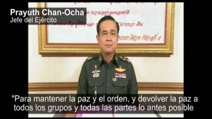 El Gobierno no fue informado de la decisión castrense antes del anuncio realizado en la televisión a las 3 de la mañana (cinco horas menos en la España peninsular). El jefe del Ejército, el general Prayuth Chan-ocha, dijo que han asumido el mando de la seguridad pública, debido a las continuas protestas, que han costado vidas y causado daños. “Tememos que esta violencia pueda dañar la seguridad del país en general. Así que, con objeto de restablecer la ley y el orden del país, hemos declarado la ley marcial [el estado de excepción]”, aseguró. “Pido a todos los grupos activistas que pongan fin a todas sus actividades y cooperen con nosotros para salir de esta crisis”. Manifestantes partidarios del Gobierno y contrarios a él están acampados en diferentes lugares de Bangkok. Los militares les han ordenado que permanezcan donde se encuentran y no emprendan marchas para evitar enfrentamientos.