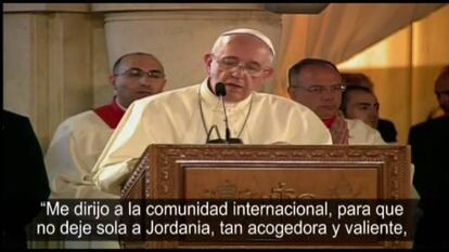 La sensación en el avión papal, camino de Jordania, era que Francisco se estaba metiendo en la boca del lobo. Que una zona tan conflictiva como Oriente Próximo solo podía deparar disgustos a un Papa cuyo discurso se caracteriza por la claridad en la denuncia. Seis horas después, tras escucharlo hablar ante el rey Abdalá II, ante los más de 20.000 cristianos que acudieron a la misa en el estadio de Amán y ante un grupo de jóvenes refugiados junto al río Jordán, la sensación fue confirmada: Jorge Mario Bergoglio iba a seguir la misma tónica de discursos comprometidos que marcó los viajes anteriores. Si en Lampedusa clamó contra la globalización de la indiferencia —“¿quién de nosotros ha llorado por estas jóvenes madres que mueren en las barcas?”—, en Cerdeña denunció el actual sistema económico —“nos está llevando a la tragedia, nos está robando la dignidad”— y en Río denunció la cultura del descarte que arrincona a los ancianos y deja sin futuro a los jóvenes, en Tierra Santa iba a referirse a la ausencia de paz: “Es necesario y urgente encontrar una solución pacífica a la crisis de Siria y una justa solución al conflicto entre israelíes y palestinos”.