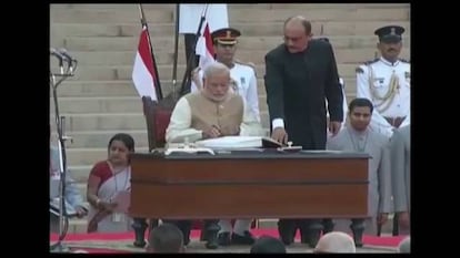 “Voy a trabajar sin miedo, enojo u odio y voy a hacer justicia a todos como lo dice la Constitución”, dijo en la ceremonia a la que asistieron cuatro mil personas, entre ellos jefes de Estado de los países vecinos, empresarios, estrellas de Bollywood y la familia Gandhi. Pero fue la presencia de Nawaz Sharif, el primer ministro de Pakistán, la más comentada.
