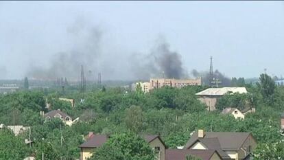 El estruendo provocado por el sobrevuelo de cazas del Ejército ucranio sobre la ciudad de Donetsk parece indicar que la ofensiva militar se acelera sobre la capital rebelde, apenas unas horas después de que fuera elegido presidente el magnate Petro Poroshenko. Desde las inmediaciones del aeropuerto, asaltado esta madrugada por decenas de milicianos, se escuchan tiroteos y explosiones y se percibe una columna de humo negro saliendo de uno de los edificios del complejo, en lo que parecen ser combates entre los separatistas atrincherados en el interior desde esta madrugada, y fuerzas ucranias. El ruido ensordecedor de los cazas, que ha atronado la ciudad sin parar durante aproximadamente una hora, se ha vuelto ahora esporádico.