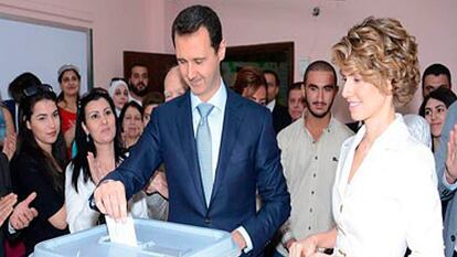 Los sirios de las zonas controladas por el régimen de Bachar el Asad tendrán hasta las doce de la noche, cinco horas más de lo previsto, para votar en unas presidenciales marcadas por la guerra civil. Por primera vez en cinco décadas, los votantes encontraron papeletas con tres candidatos diferentes en sus colegios electorales: el actual presidente El Asad, el comunista Maher Hayar y el exministro Hasan al Nuri. Nadie duda de que El Asad ganará de largo. El presidente y su mujer, Asmaa, votaron en la escuela del Naim Muasiri, en el distrito de Al Malaki, en Damasco. Los sirios que acudieron a las urnas de la capital obviaban los impactos de mortero registrados en varias zonas de la ciudad, a los que están acostumbrados. Muchos grupos de jóvenes y vecinos afines al Gobierno ya celebraban con banderas e himnos el probable resultado electoral. En algunos colegios, los más exaltados marcaban sus papeletas con sangre. Por la tarde se desconocía si el goteo de proyectiles insurgentes, que sin duda causó heridos, mató a alguien en los barrios gubernamentales.