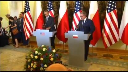 “Reconstruir la confianza requerirá un tiempo”, dijo Obama en una rueda de prensa en Varsovia junto al presidente polaco, Bronislaw Komorowski. “Mientras tanto, estaremos preparados para cualquier contingencia que pueda ocurrir si el señor Putin sigue con sus estrategias para desestabilizar a sus vecinos”, añadió. En sus reuniones con los líderes polacos y con los jefes de Estado y de Gobierno de los antiguos satélites soviéticos —países que vuelven a sentirse amenazados— el mensaje del presidente de EE UU fue idéntico: el poderío militar de la primera potencia mundial está a su servicio. El mismo mensaje se dirige a Putin.