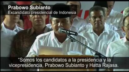 Ante todos los indicios que apuntaban a su derrota, y en una medida de protesta, Prabowo había anunciado dos horas antes su retirada del proceso electoral, en una comparecencia televisada. Tras alegar un “fraude masivo y sistemático”, el general aseguró que “vamos a ejercer nuestros derechos constitucionales y rechazar estas elecciones presidenciales, que adolecen de fallos legales”. “Nos retiramos de estas elecciones”, agregó, antes de dar instrucciones a los interventores de su formación, el Partido del Movimiento para una Gran Indonesia (Gerindra), de que abandonaran.