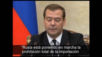 “Todas estas medidas son exclusivamente medidas de respuesta. Nosotros no queríamos que los acontecimientos se desarrollaran de esta forma. Espero sinceramente que el pragmatismo económico venza las malas consideraciones políticas y nuestros socios comiencen a pensar [antes de actuar] y no a amenazar ni limitar a Rusia”, declaró Medvédev, que agregó que la colaboración económica “puede ser restablecida en su anterior volumen”. “Es lo que nosotros quisiéramos”, señaló.