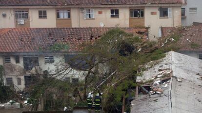 Durante la madrugada del martes hubo mucho viento en el litoral de Sao Paulo. En el momento de la caída llovía mucho, según detalló Fernando Estriga, dueño de un quiosco a 50 metros del lugar del accidente. "Nos asustamos mucho, la gente comenzó a correr de un lado a otro". El estruendo, dijo, se escuchó a tres calles. "Fue una escena muy impactante, había muchos curiosos, mucha gente que quería ayudar", contó.