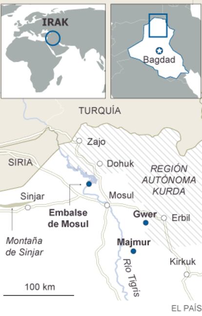 Majmur es un pueblo fantasma. El calor del mediodía hace pensar que sus habitantes sestean. Pero no sólo las cancelas están cerradas, tampoco hay coches en las calles, ni se oyen niños. Aunque hace una semana que las fuerzas kurdas (peshmergas) recuperaron la localidad de manos del Estado Islámico (EI), la mayoría de sus habitantes no se ha atrevido a regresar. El actual conflicto ha reavivado las tensiones entre kurdos y árabes iraquíes, y los yihadistas aún están a una veintena de kilómetros.