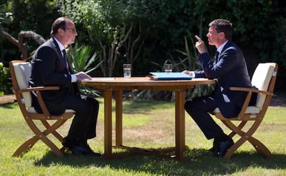 Valls se ha reunido esta mañana con Hollande para anunciarle la decisión y, según un comunicado de la presidencia, “el jefe de Estado le ha pedido que constituya un equipo en coherencia con las orientaciones que él mismo ha definido para el país. Su composición se anunciará el martes”. El órdago de Hollande frente a sus críticos se produce en un momento en el que los resultados económicos, con el crecimiento estancado y el paro al alza, no le acompañan. Sin popularidad, con solo un 17% de apoyo ciudadano, tampoco. Desde que en 2012 accedió a la presidencia de la República, se dispone a contar con su tercer Ejecutivo. El segundo solo le ha durado 147 días y, según diversos analistas, ahora intenta el todo por el todo para sacar sus reformas frente a todo tipo de resistencias, especialmente las internas.