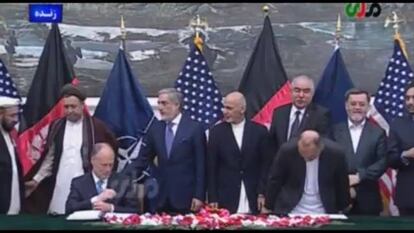 Al lado de Ghani estuvo presente Abdullah Abdullah, el rival electoral con quien ha formado un Gobierno de unidad nacional para hacer frente a la creciente insurgencia. La víspera, tras su investidura, el presidente hizo un llamamiento a los talibanes para que participen en el proceso político. Sin embargo, esta guerrilla que lleva una década luchando contra la presencia de las tropas extranjeras en su país, tachó ayer el BSA de plan “siniestro” de EE UU para controlar Afganistán.
