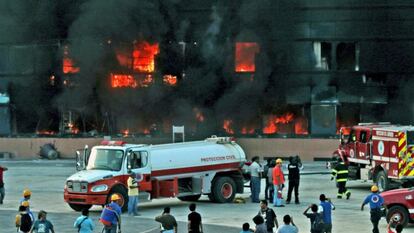 Los alumnos de magisterio compañeros de los 43 desaparecidos irrumpen en la sede estatal e incendian una de las oficinas centrales. No ha habido heridos