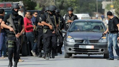 La experiencia tunecina, el primer proceso democrático completo en un país musulmán tras la primavera árabe, llega este domingo a su cita con las primeras elecciones generales libres que celebra contando con una nueva Constitución, pero aún bajo la sombra amenazante del terrorismo yihadista. Pese a la obsesión gubernamental por transmitir control, y pese al despliegue de 50.000 agentes por todo el país, este jueves dos terroristas han matado a un policía, han herido a otro y se han atrincherado con cinturones explosivos en su casa con sus mujeres e hijos en un barrio a las afueras de la capital. Ante esta situación, el Ministerio de Interior ha anunciado el cierre durante los días 24, 25 y 26 de octubre de los pasos de Ras Jedir y Dehiba, en la frontera con Libia, un país inmerso en el caos, sospechoso de ser controlado por bandas yihadistas que pasan a sus anchas por la frontera común armas y todo tipo de contrabando.
