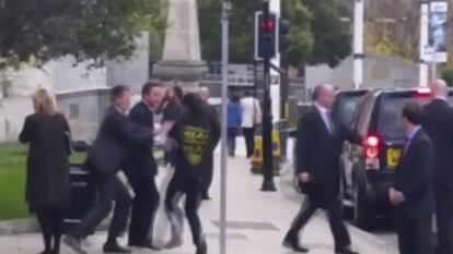La policía arrestó este lunes durante un breve periodo de tiempo a un hombre que estuvo a punto de colisionar con el primer ministro británico, David Cameron, cuando iba corriendo por una calle de la localidad inglesa de Leeds. El jefe del Gobierno británico se disponía a entrar en un vehículo tras ofrecer una rueda de prensa sobre la mejora de las líneas de tren en la región cuando los agentes que le acompañaban frenaron a un individuo que se abalanzaba sobre él.