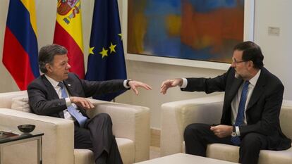 El Gobierno español ha prometido mantener los programas de cooperación bilateral con Colombia y contribuir con “recursos humanos” a una eventual operación de paz, que podría centrarse en tareas de desminado y desarme. Tras recibirle en Moncloa, Rajoy ha acompañado a Santos a almorzar con el Rey en Zarzuela y a recibir el doctorado honoris causa. El presidente colombiano llevará su mensaje a Bruselas, París, Londres, Berlín y Lisboa durante esta semana.