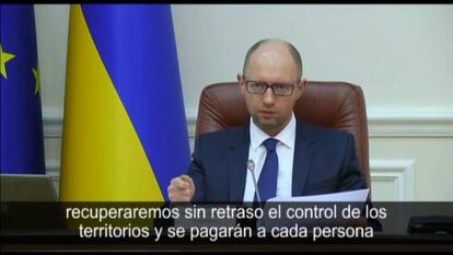 "Pagar hoy a esas zonas significa que el dinero no llegará a las personas. Se lo llevarán los bandidos rusos, lo que no es otra cosa que un apoyo directo al terrorismo ruso", dijo Yatseniuk. Al mismo tiempo, precisó que la suspensión de pagos no afectará al suministro de gas y electricidad a las zonas rebeldes. "Son nuestros territorios, es nuestra gente. Con los terroristas hablaremos aparte. Se aproxima el invierno, por lo cual sería duro, en primer lugar, para la gente. El Gobierno no permitirá que se congelen, porque eso llevaría a una catástrofe humana", indicó Yatseniuk, añadiendo que son medidas temporales. "En cuanto se retiren los terroristas rusos de la zona de Donetsk y Lugansk, retomaremos el control sobre esos territorios y entregaremos personalmente a cada ciudadano las ayudas sociales a las que tiene derecho", añadió.