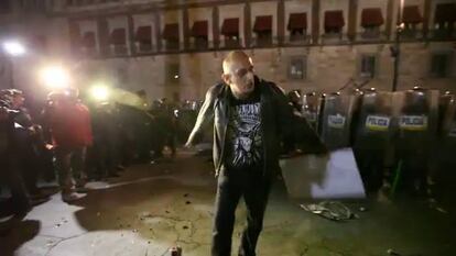 Cuando la cincuentena de atacantes se acercó a las puertas de Palacio Nacional, vino el grito de Damián, y muy poco después, las cargas. Unos 500 policías antidisturbios rodearon a los que todavía quedaban en el Zócalo de la Ciudad de México, cerraron los accesos a la plaza principal de la capital mexicana y detuvieron al menos a uno de los manifestantes.