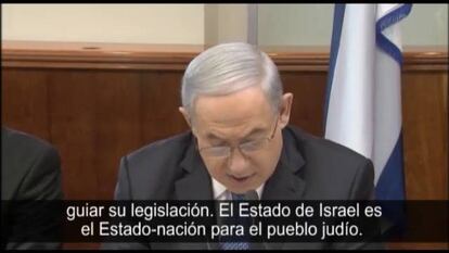 El Consejo de Ministros de Israel aprobó este domingo el primer borrador de una norma que consagra el carácter judío del país por encima incluso de su naturaleza democrática. La Ley Básica, que proclama el “Estado-nación judío”, aún debe aprobarse en la Knesset –el Parlamento, donde comenzará a tramitarse esta misma semana- y, dada la polémica que ha suscitado, se asume que sufrirá modificaciones, pero por ahora mantiene elementos que hacen que el centro y la izquierda cataloguen el texto de “equivocado”, “crimen contra la convivencia” o “racista”. Además de esa primacía de los valores judíos, no garantiza literalmente la igualdad entre todos los ciudadanos y elimina el árabe como lengua cooficial. El 24,6% de la población de Israel (1,9 millones de habitantes) no profesa el judaísmo. Casi un millón y medio son árabes.
