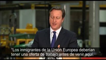El primer ministro David Cameron presentó el viernes la serie de medidas con las que pretende frenar el aumento de la inmigración europea en Reino Unido, empeño en el que, como demuestran los datos oficiales publicados el miércoles (43% más de inmigración neta que el año pasado), su Gobierno ha fracasado estrepitosamente hasta la fecha. Su propuesta —sobre la que recaía una enorme expectación en un momento en el que la inmigración y la UE ocupan el centro del debate político a seis meses de las elecciones— no incluye un cupo a los inmigrantes de la golpeada eurozona, como demandaban sectores de su partido. Pero impone durísimas restricciones a los ciudadanos europeos que vengan a Reino Unido a trabajar.