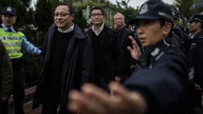 Los profesores Benny Tai y Chan Kin Man y el reverendo Chu Yiu Ming, cofundadores del movimiento pro democracia que ocupa las calles de Hong Kong desde hace 67 días, se entregaron este miércoles a la policía, y fueron puestos en libertad sin cargos una hora después.