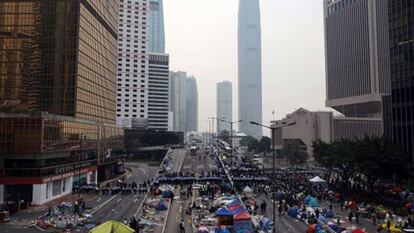 Tras 75 días de sentadas sin precedentes en Hong Kong, unos 5.000 agentes de policía, acompañados de operarios de limpieza, participaron este jueves en una operación masiva de desalojo en la céntrica zona de Admiralty. Cerca de 12 horas de desmantelamiento de barricadas y limpieza de escombros pusieron punto final a la acampada del movimiento de los paraguas que demandaba elecciones libres para la jefatura de Hong Kong en 2017.