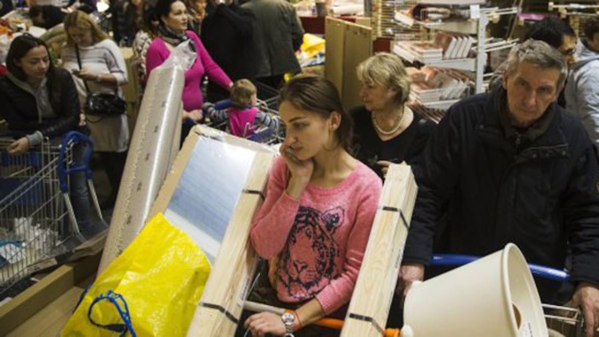 Los ordenadores, televisores, teléfonos móviles y electrodomésticos de larga duración desaparecían de las estanterías de las tiendas especializadas, mientras las compañías de móviles estudiaban la posibilidad de subir las tarifas de roaming antes de fin de año y de las provincias venían noticias sobre la ausencia de rublos en bancos como los de Ulianovsk, la patria chica de Vladímr Lenin. En el sector del automóvil, por lo menos cinco firmas de distribución de coches interrumpieron los suministros de coches extranjeros hasta nuevo aviso.