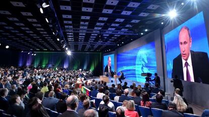 Putin ha insistido de nuevo en la idea de la crisis como oportunidad para la economía rusa y ha subrayado que cuando se necesiten “recursos energéticos suplementarios”, Rusia ya habrá diversificado su economía, porque “la vida misma nos obligará a hacerlo”. “Podemos”, ha afirmado y ha asegurado que no se recortarán las prestaciones ni los programas sociales que se derivan de los edictos promulgados antes de incorporarse a su último mandato en 2012.