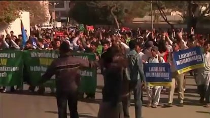 Las movilizaciones en Karachi apenas congregaron a unos centenares de personas -la gran ciudad portuaria y comercial del sur de Pakistán, donde viven 23,5 millones de almas- y a unos miles en la capital argelina. Apenas dos centenares de personas, según Reuters, se congregaron ante el Consulado de Francia en la ciudad paquistaní. Armados con palos, y según un periodista de Reuters algunos también con pistolas, los congregados respondieron con piedras y disparos cuando la policía impidió su aproximación al Consulado francés utilizando gases lacrimógenos y cañones de agua.