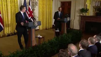 Les separaba el acento y el tono, ya que uno es un primer ministro en busca de la reelección en mayo y el otro un presidente de salida. La comparecencia ante la prensa este viernes del primer ministro británico, David Cameron, y el presidente de EE UU, Barack Obama, fue una muestra de unidad transatlántica en toda regla. Hasta que se habló de la integración de minorías y la amenaza que supone para Europa que esta no exista.