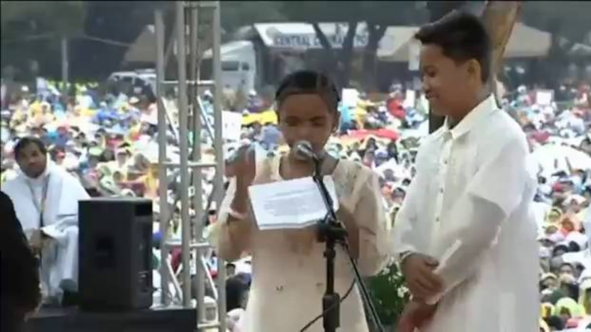 Nada más llegar, después de asistir a la recepción de bienvenida en el palacio presidencial de Malacang, se saltó la agenda oficial de la visita y acudió por sorpresa a un hogar de niños de la calle en Filipinas. Allí, Glyzelle Palomar, una niña de la calle de 12 años, dio en el clavo al interrogar al Papa, entre lágrimas, sobre una de las grandes contradicciones de la religión católica, por qué si Dios es amor y todo lo puede "permite" que personas como ella sufran. “Hay muchos niños abandonados por sus propios padres, víctimas de muchas cosas terribles como la droga o la prostitución. ¿Por qué Dios permite estas cosas, aunque no sea culpa de los niños? ¿Por qué son tan pocos los que nos vienen a ayudar?”. El Papa la abrazó y admitió haberse quedado sin palabras: “Has hecho la única pregunta que no tiene respuesta”.