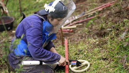 En Colombia se retiran minas desde hace 10 años, cuando el Gobierno creó un batallón de 394 hombres dedicado a labores de limpieza donde no hay presencia de grupos armados. También colabora la organización británica Halo Trust. “El problema es que esas zonas no son las que requieren desminado. Necesitamos poner parches donde está el dolor”, dice Álvaro Jiménez, director de la CCCM, organización que ha propuesto que se haga “un acuerdo especial” entre el Gobierno y las FARC para poder desminar las zonas donde operan las guerrillas. La propuesta incluye 57 lugares en 10 departamentos. "Que escojan algunas de estas zonas para que las limpien las organizaciones que las dos partes decidan”, explica.