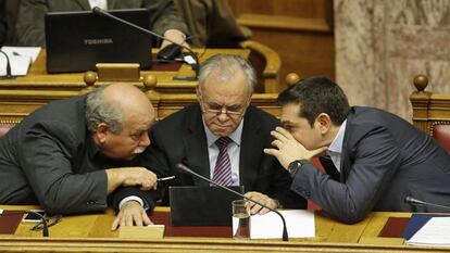 En un discurso alentado por “la dignidad” (“la soberanía nacional y el mandato del pueblo [en las urnas] son innegociables”), su tono de firmeza e incluso exigencia ante Europa pudo sonar a desafío, pero en realidad se limitó a desgranar el grueso de las propuestas de su programa electoral. La primera prioridad, dijo, será afrontar con urgencia (“a partir del miércoles”; el debate de investidura concluye el martes a medianoche con el voto de confianza) la emergencia social que vive el país, con tres millones de personas en el umbral de pobreza: “Daremos comida, luz, techo y sanidad a decenas de miles de familias que pasan hambre y viven a oscuras”; también será inmediata la recontratación de todos los empleados públicos cuyos despidos vulneraron la ley (limpiadoras ministeriales, guardas escolares, etcétera).