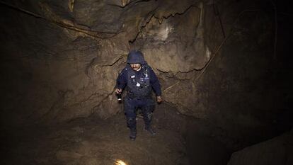 La policía cree que Gómez huyó de la finca en septiembre para buscar otro escondrijo. Se desplazó a otra zona de la sierra, entre los municipios de Tumbiscatío y Arteaga, donde nació, y allí llegó al extremo de encerrarse durante un par de semanas en una cueva que está al borde de un río y que hasta entonces los Templarios habían usado como una cárcel para torturar a sus enemigos o para retener a secuestrados. En la boca de la gruta instalaron una puerta de hierro que ya ha sido descolocada.