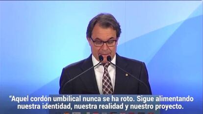 Artur Mas, que hace tan solo unos días no se sabía si tendría algún papel, ha intervenido en primer lugar y ha enfatizado el vínculo de Cataluña con Europa y ha apelado a las raíces institucionales de esta región. El presidente de la Generalitat ha destacado el "cordón umbilical" que históricamente ha unido Cataluña con el Mediterráneo y Europa y, tras recordar que la Generalitat se constituyó en el siglo XIV y que él es el presidente número 129, ha remarcado que la identidad catalana tiene unas "raíces muy profundas" y por ello, ha dicho, "no se ha perdido" con el paso del tiempo. "Podemos mirar muy lejos atrás y podemos mirar lejos hacia nuevos horizontes que siempre imaginamos mediterráneos y europeos", ha dicho.
