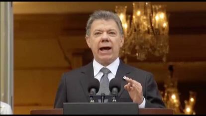 “Señores de las FARC: Escuchen el clamor nacional. No se hagan los sordos ante lo que los colombianos les estamos gritando: ¡Llegó la hora de acabar la guerra!”, agregó Santos enviándole un mensaje a los negociadores de esa guerrilla para que demuestren, con hechos, que quieren acabar con el conflicto armado. El anuncio se da cuando los diálogos parecen estancados ya que han pasado diez meses desde que empezó la discusión sobre cómo se reparará a siete millones de víctimas y la justicia a la que se someterían los combatientes después de desmovilizarse, sin que se haya llegado a un acuerdo hasta ahora.