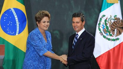 No hay foto fija para América. En los últimos meses, los equilibrios de poder en la región no han dejado de moverse. Cuando Estados Unidos y Cuba aún no han culminado su histórico deshielo, ahora los dos gigantes latinoamericanos, México y Brasil, han decidido acabar con su tradicional lejanía y abrir una etapa de acercamiento y colaboración. Ese es el objetivo de la visita de Estado iniciada el lunes por la presidenta brasileña, Dilma Rousseff, la primera que efectúa al país norteamericano desde que llegó al poder.