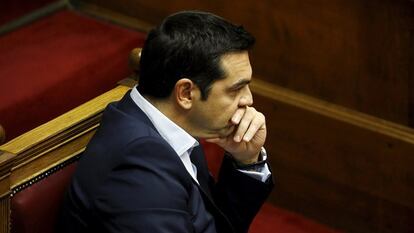 En un ambiente de seria crispación en el que destacaban, como si fueran los principales agraciados, los relajados miembros del ala más radical de Syriza, así como el henchido patriotismo de Panos Kamenos, líder de Griegos Independientes (ANEL, socio de Gobierno de Syriza), la oposición interpretó el referéndum (una pregunta: sí o no a la propuesta de los socios del 25 junio) como un plebiscito sobre el euro y sobre Europa. “Tsipras conduce el país a un referéndum cuya pregunta última es un sí o no a Europa mientras propone una ruptura con los socios y una salida del euro”, clamó Andonis Samarás, el desdibujado dirigente de Nueva Democracia, que sopesa “una moción de confianza” al Gobierno