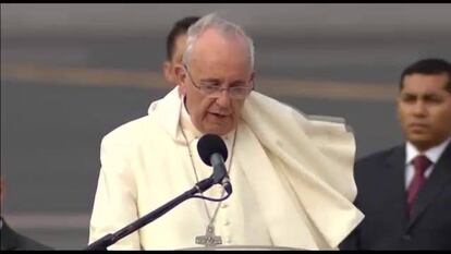 Nada más aterrizar en el aeropuerto de Quito, el papa Francisco ofreció al presidente de Ecuador, Rafael Correa, “el compromiso y la colaboración” de la Iglesia católica para que “los logros en progreso y desarrollo que se están consiguiendo garanticen un futuro mejor para todos”. El Pontífice, que durante los próximos ocho días visitará Ecuador, Bolivia y Paraguay, pidió a Correa que ponga “especial atención” en los “hermanos más frágiles”. “Los pobres son la deuda que aún tiene toda América Latina”, dijo.