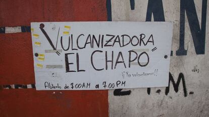 Yendo del aeropuerto al centro, a un lado de la avenida está el taller de reparación de neumáticos de Armando Rodríguez, que se apoda igual que el jefe del cartel de Sinaloa, como indica el cartel de su negocio, Vulcanizadora El Chapo. "Desde niño me llaman chapo, chapillo". Este año cumple 58 –igual también que una de las edades que se le atribuyen al narco, pues la data del mito oscila según unos registros u otros–. Los dos son chapos, como dicen en México a los bajitos, pero Guzmán aparece en la lista Forbes y Rodríguez lleva 45 años reparando pinchazos. Con todo, él se congratula del logro de su tocayo: "Que gane el más vivo pues. Él se aventó y se salió. Se durmieron y se chingaron. Se les peló el carajo. Se les peló por pierna, ni el polvo les dejó. Que gane el bueno, el triunfador".