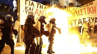 El sí al acuerdo ha obtenido 229 votos; el no, 64, entre ellos 32 de la formación de Tsipras Manifestantes lanzan cócteles molotov y la policía responde con gases lacrimógenos