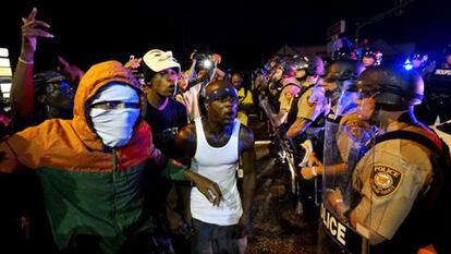 Ferguson revive un año después algunos de sus fantasmas. Las reivindicaciones pacíficas el domingo, en el primer aniversario de la muerte de un joven negro desarmado por disparos de un policía blanco en ese suburbio de San Luis (Misuri), derivaron de noche en escenas de caos y enfrentamientos entre manifestantes y policías.