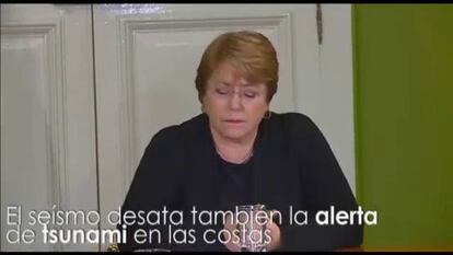 Ocho chilenos han muerto a causa del terremoto de magnitud 8,4 en la escala Richter que ha azotado la zona central del país y que se ha registrado a las 19.54 hora local. Un millón de personas han sido evacuadas, según ha informado esta noche la presidenta, Michelle Bachelet, desde el Palacio de La Moneda, quien ha puntualizado que la información acerca de las víctimas y los daños aún es parcial. Estos son algunos vídeos que ha dejado la jornada.