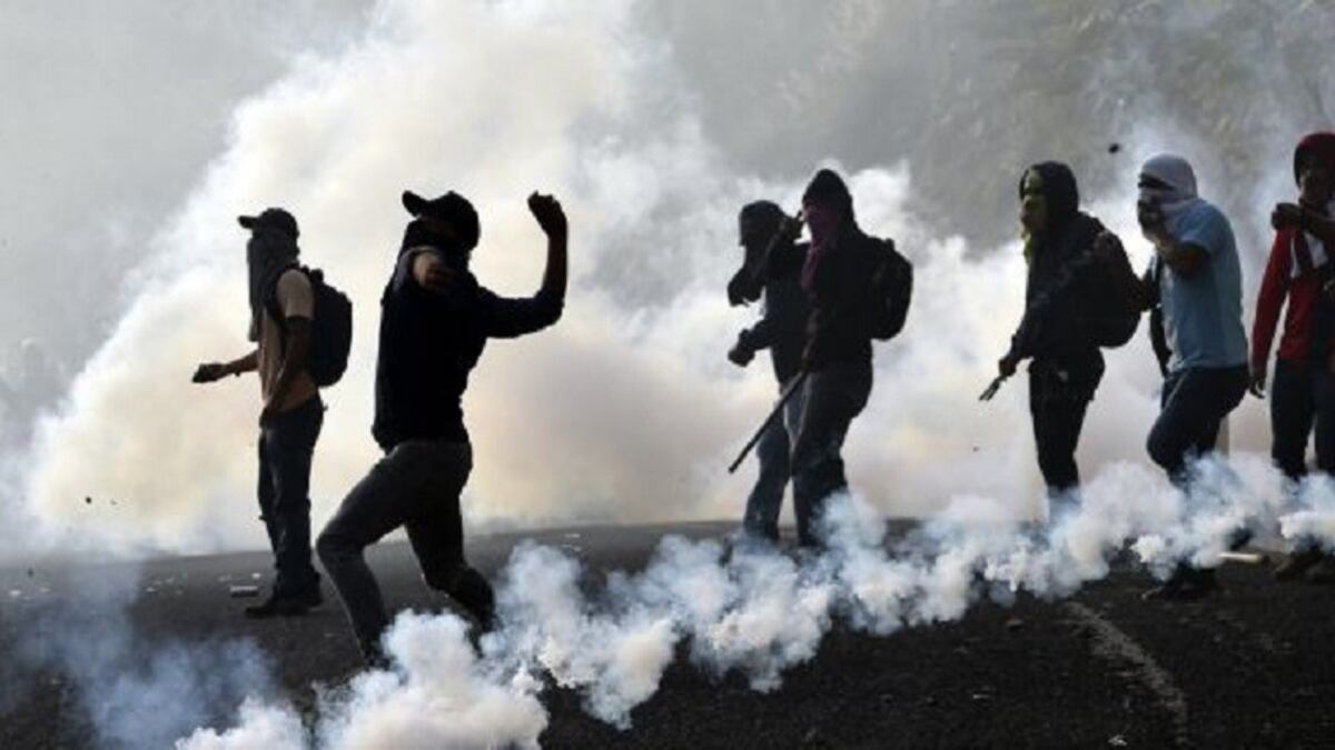 Un grupo de normalistas se enfrenta con la policía estatal y retiene a cuatro agentes