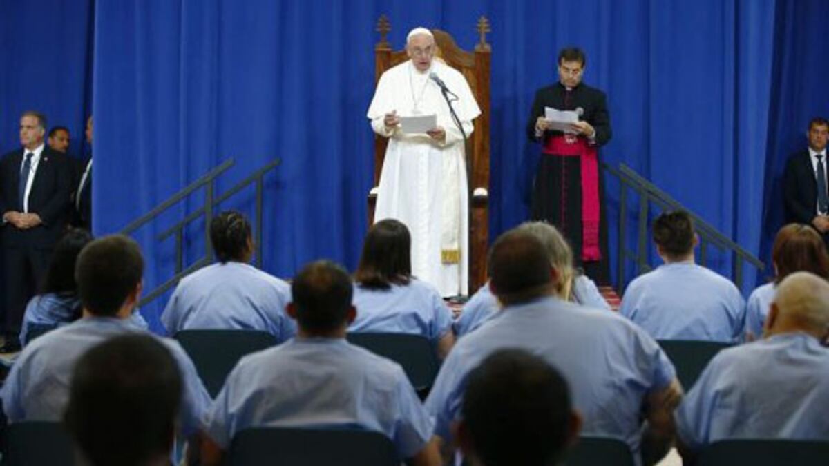 Bergoglio, que acudió a Filadelfia para participar en el Encuentro Mundial de las Familias, abogó por “una reinserción de la que todos formamos parte, a la que todos estamos invitados a estimular, acompañar y generar”. Les dijo a los presos que había venido “como pastor pero sobre todo como hermano a compartir su situación” y hacerla también suya. Y tras sus palabras, fue a saludar a los reos sentados en hileras de sillas. A algunos les estrechó la mano, los abrazó o puso su mano en su frente.