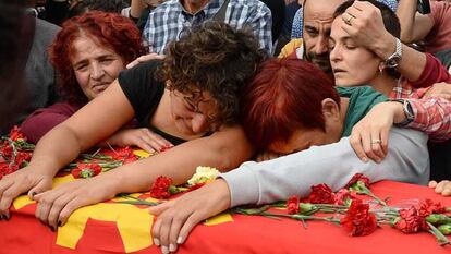 Turquía amanecía este domingo llorando a las víctimas —97, según el último balance oficial- del que ya es el mayor atentado de la historia del país—, mientras las primeras investigaciones sobre la masacre de Ankara apuntan a una autoría del Estado Islámico (conocido como ISIS por sus siglas en inglés), según fuentes policiales citadas por varios medios. Hasta el momento ninguna organización ha asumido la autoría del ataque –presuntamente cometido por dos suicidas- y el primer ministro, el islamista moderado Ahmet Davutoglu, señaló el sábado a cuatro organizaciones sospechosas: el Estado Islámico (ISIS), el grupo armado kurdo PKK, y las organizaciones de extrema izquierda DHKP-C y MLKP.