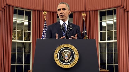 En una inusual elocución desde el Despacho Oval, el presidente de Estados Unidos, Barack Obama, defendió la noche de este domingo su actual estrategia contra el Estado Islámico (ISIS, en sus siglas en inglés) como la más adecuada para “destruir” al grupo yihadista. Pero admitió que, tras el tiroteo de California, es necesario tomar nuevas medidas que hagan más difícil que se repita un ataque de ese tipo en el país sin que eso suponga entrar en una espiral de miedo.